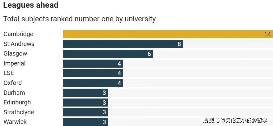 虽然剑桥大学综合排名不太给力,但在14个学科中获评第一,取得断崖式领先。